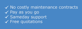 |  | Systems We offer a full range of systems from home multimedia machines, workstations, laptops through to Network Server Systems for businesses. [more] Network Servers We are qualified to supply and install a full range of servers from specifically built clone machines to a full range of servers from Intel or Compaq. [more] Anti-virus & Firewall Anti-virus is a must for all computers regardless of situation. Even a computer not connected to a network or the Internet can get infected if an infected disc is placed into the computer unbeknown to the user. [more] VPN Many corporate businesses increasingly find that they have a requirement to share information and data between offices in separate locations. [more] Printer Repairs We are printer repair specialists. With many years experience. We cover all printer makes and models. HP, Canon, Epson, OKI, Xerox and many others. [more] Audio & Media Kaymark Computers now stocks a wide range of Hi-Fi separates,DVD players, amplifiers, speakers, CD Players, Tuners, MP3 players, DVD Recorders, Plasma Screens, LCD TV’s, CRT TV’s and projection systems from all of the leading manufacturers. [more] Financial Services Lack of investment in IT systems - could leave your business in a position where it cannot compete effectively in the marketplace. Key to this decision is not just what to invest in, but how to finance the investment. Supported by HP we provide a broad spectrum of financial services. [more] |  |  | FM I.T. Facilities Management is contract network support. It is providing response time services to corporate I.T. systems, with weekly onsite support for your network, computer & software related problems. [more] Maintenance Most computer users will at some point experience problems with PC's, Servers, Network Faults, Monitors and Printers that require expert assistance. [more] Installations Let us build and install your P.C. of choice. If you need advice tell us your business application and let us specify and provide the right P.C. build for your business or home. [more] Support We provide a comprehensive Technical Support service designed to get all your components and computer systems operating efficiently together as an integrated package. [more] Consultancy Even small companies face decisions every day involving web technology; telecommunications; network issues; security. Kaymark can help reduce those risks by providing a consultancy service to enable you to achieve maximum return on your IT investment. Depending upon your requirements there are several options that Kaymark can offer. [more] |  |  |  |  | |